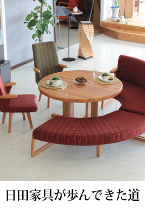 その後、生活様式の洋風化に伴いリビングセットやダイニングセット等の脚物家具を主として生産され産地が形成されました。